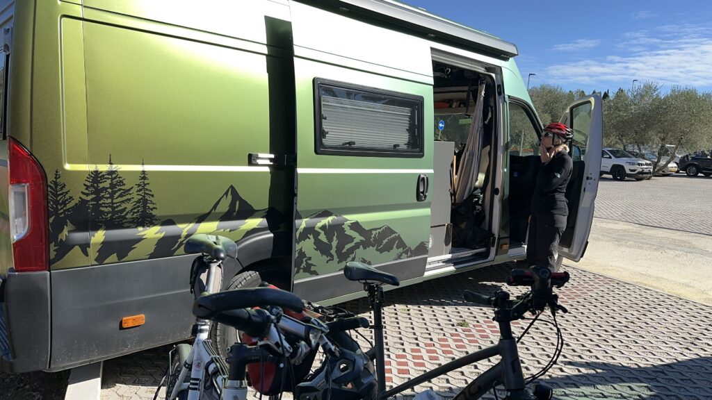 Wir steuern einem Parkplatz an, laden die Räder aus und los geht es.