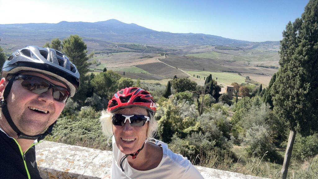 Nach knapp 10 km erreichen wir Pienza. Ein kleines Bergdorf, wir erwarten nicht viel, ich bin aber schockverliebt und küre es zu meinem Lieblingsort dieser Reise. Der Panoramarundgang ist extrem sehenswert. Da muss einfach eine Selfie her.