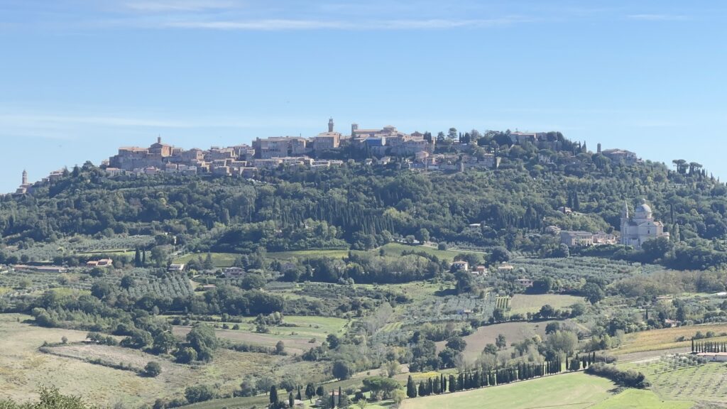 Anne hält sich tapfer und es dauert nicht lange, da entdecken wir Montepulciano am Horizont.