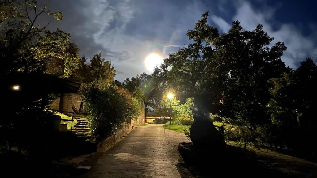 Weiter geht es zum Glück mit dem Alsforddmobil zu einem Campingplatz nach Lucherino, der sehr Basic, aber auch sehr schön sein soll. Wir fahren über einen Pass bei Montalcino. Erneut extrem sehenswert, man kann aber auch nicht jedes Dorf ansehen. Nach knapp 45 Minuten sind wir dann auf dem Campingplatz und ergattern einen Panorama-Stellplatz. Der Sonnenuntergang ist….. seht selbst.