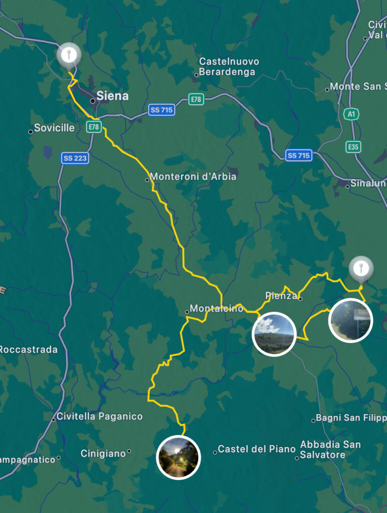 Steil nach unten durch die Stadt geht der Weg, um dann wieder angenehm nach oben zu führen, Richtung Val d’Orcia. Das Highlight dieser Strecke, vielleicht auch das dieser Reise.